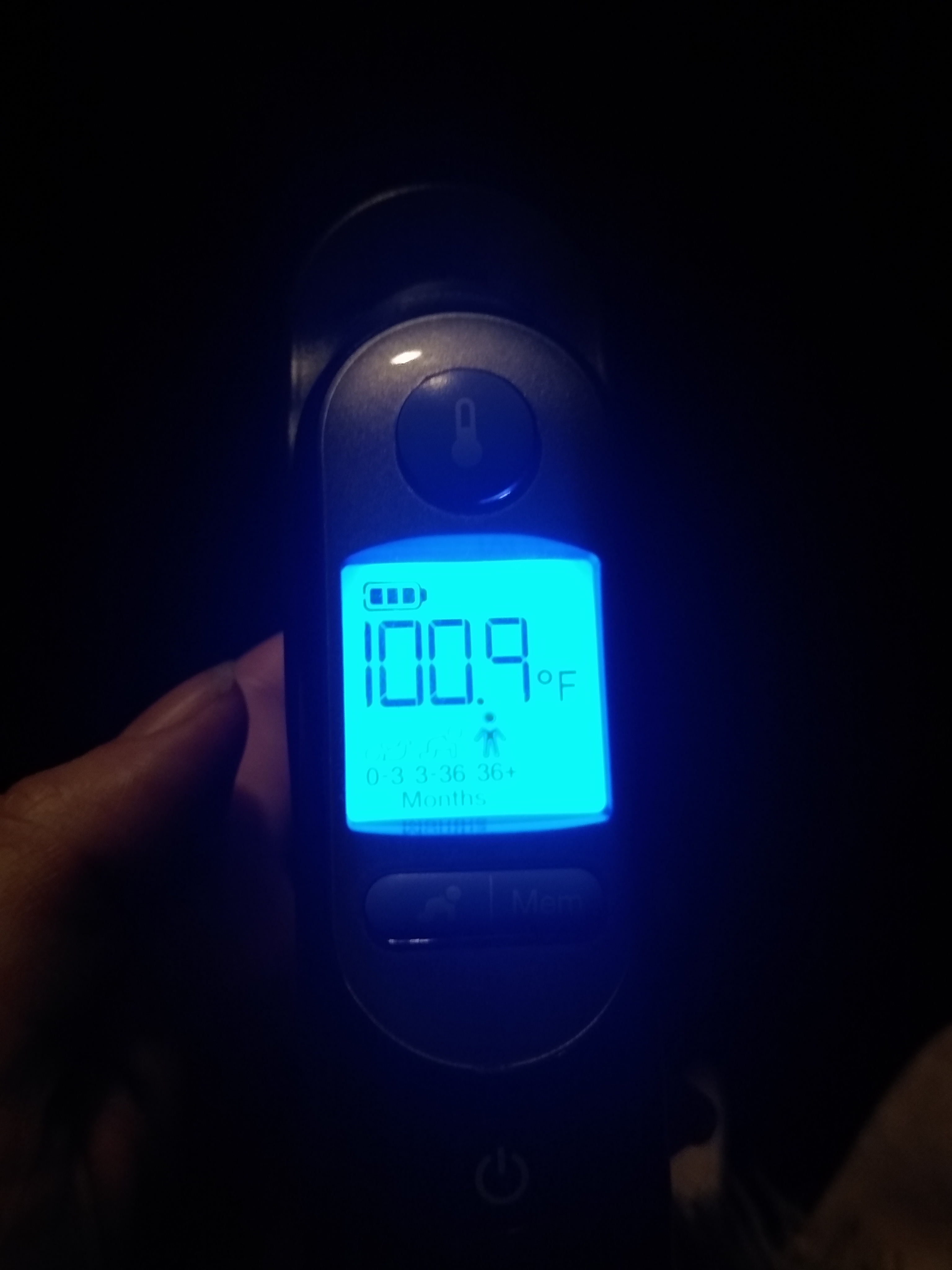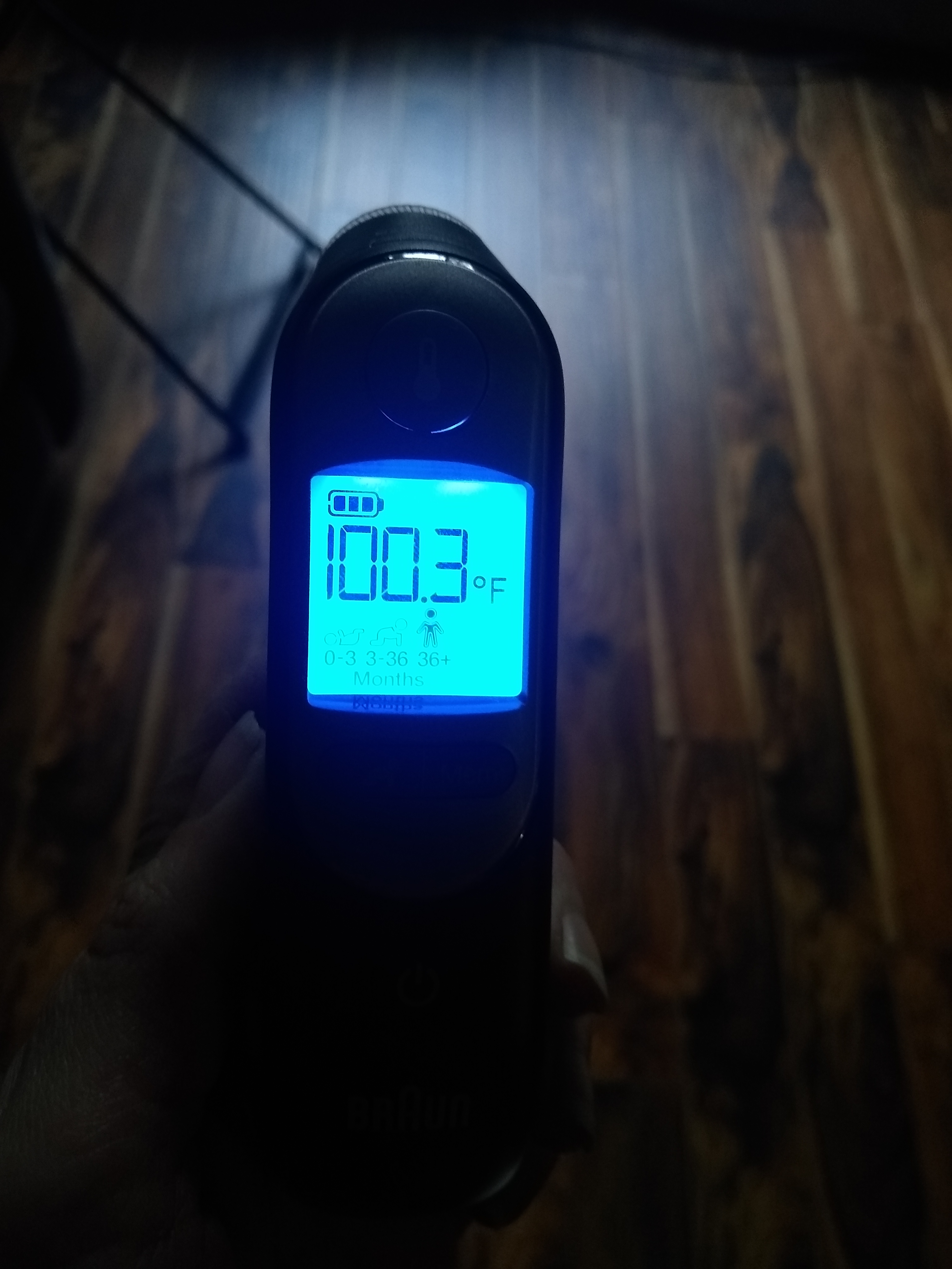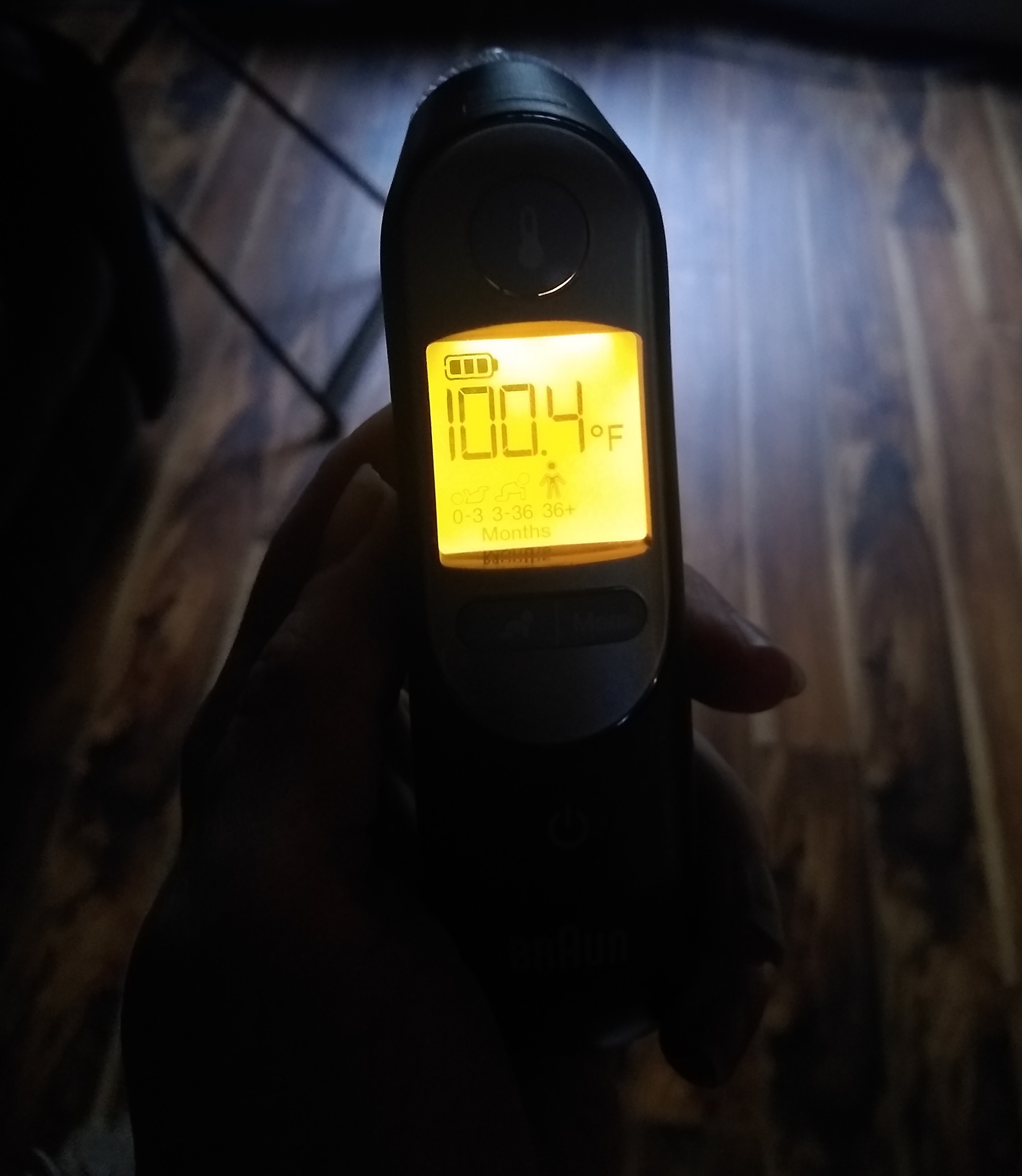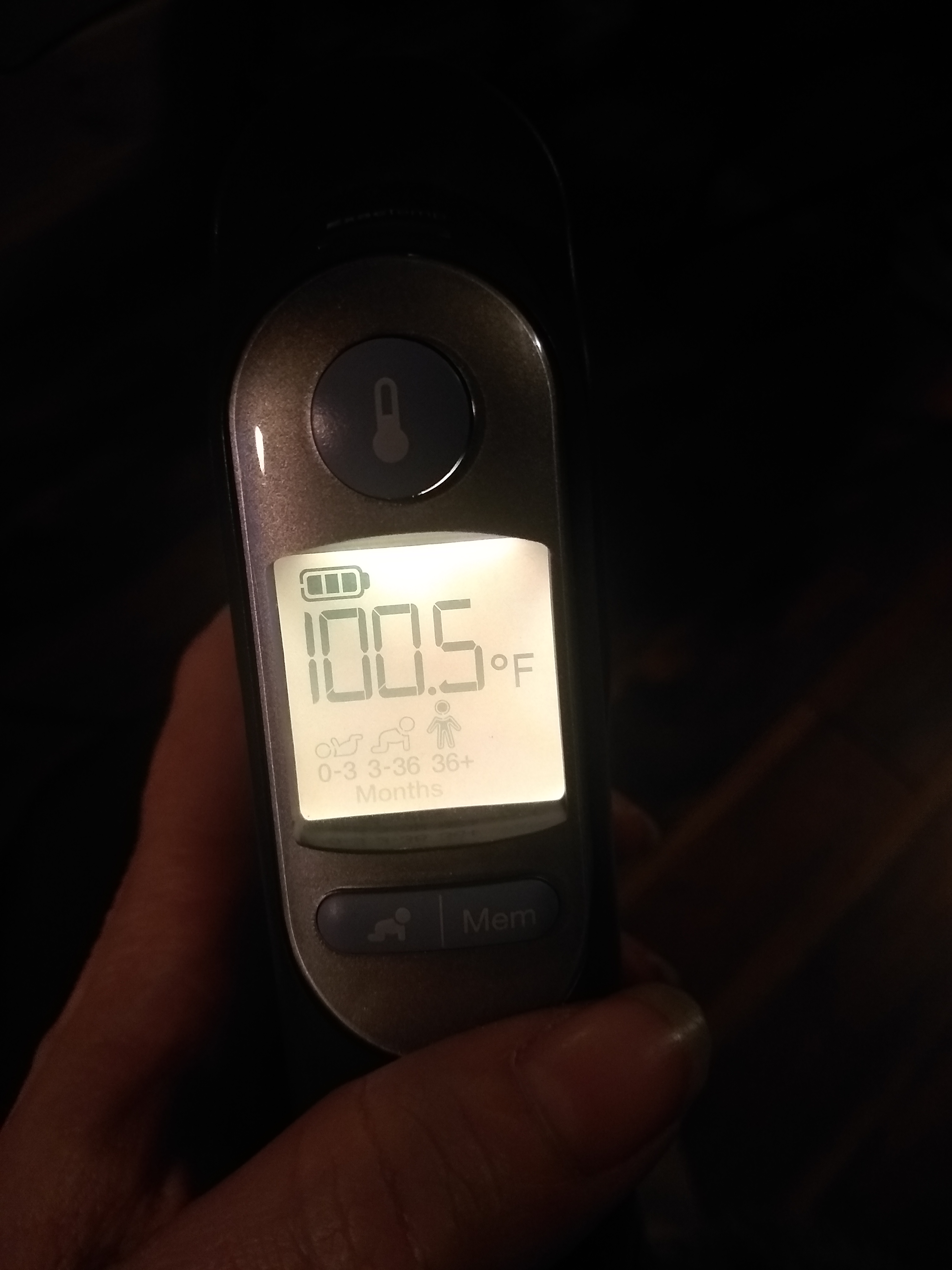 • 7:03 pm – Temp down to 100.3°F with Tylenol and popsicles. Body aches a little better. Still weak/fatigued. Headache 3-4/10.