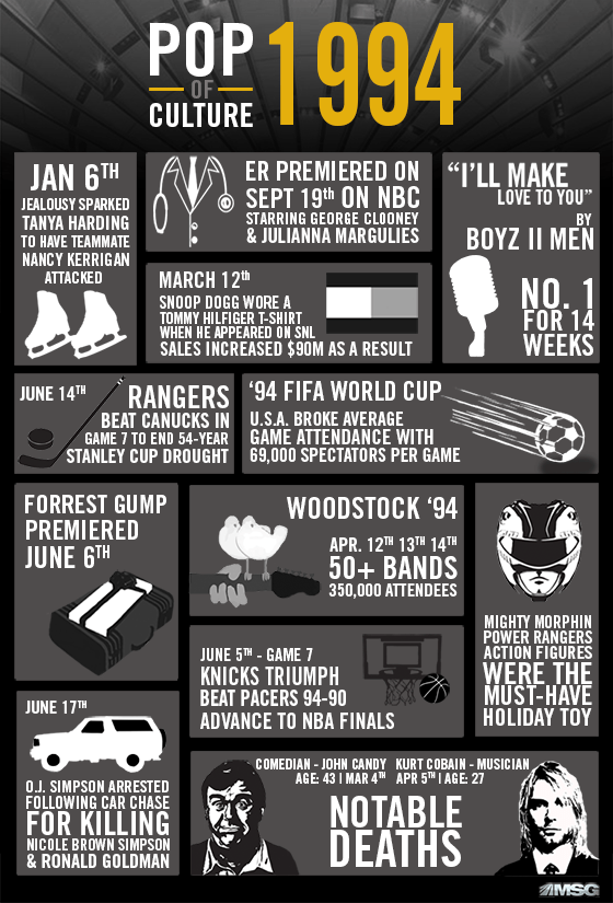 A few other notable things to potentially sprinkle throughout: Pagers, Barbara Walters, Shawshank Redemption, Apollo 13 (1995, but still), The Magic School Bus, Fresh Prince, Bill Hicks dies, 1994 Winter Olympics, first photo of Pluto from Hubble, the Channel Tunnel is finished between England and France, and a whole lot more…
